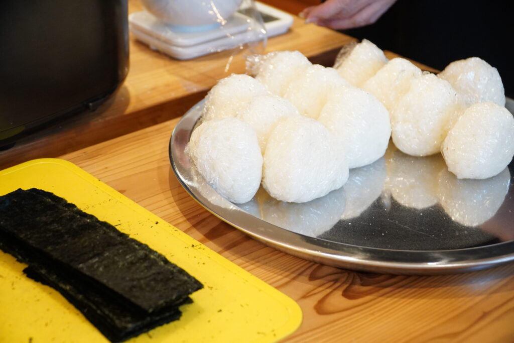 おにぎりに巻いたノリはCASEから徒歩5分ほどのところにある老舗日本茶店&カフェ「茶のつたや」さんのノリ。
