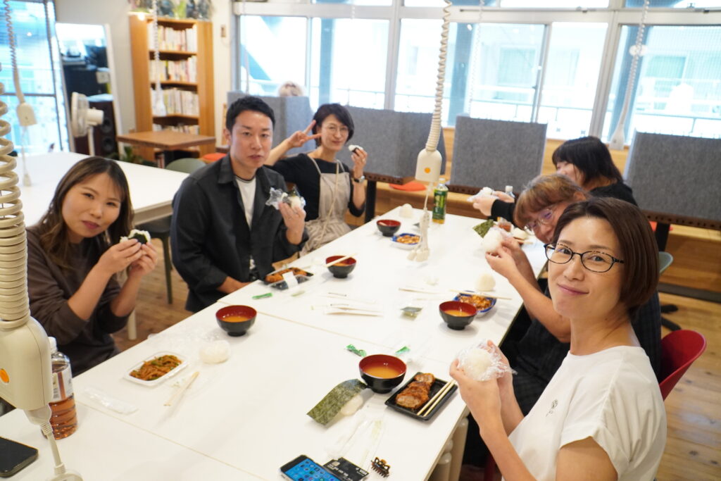 今回はおにぎりとおみそ汁のシンプルなセットだったので、みなさんおいしそうなおかずを持参していらっしゃいました。