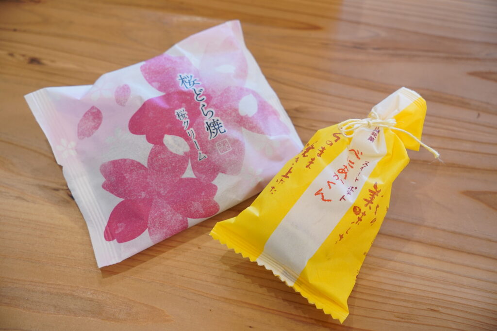 やはり春限定のお菓子は外せないと思い、「桜どら焼」と、スタッフ竹内くんのチョイスの「べにあかくん」をいただいてみました。
