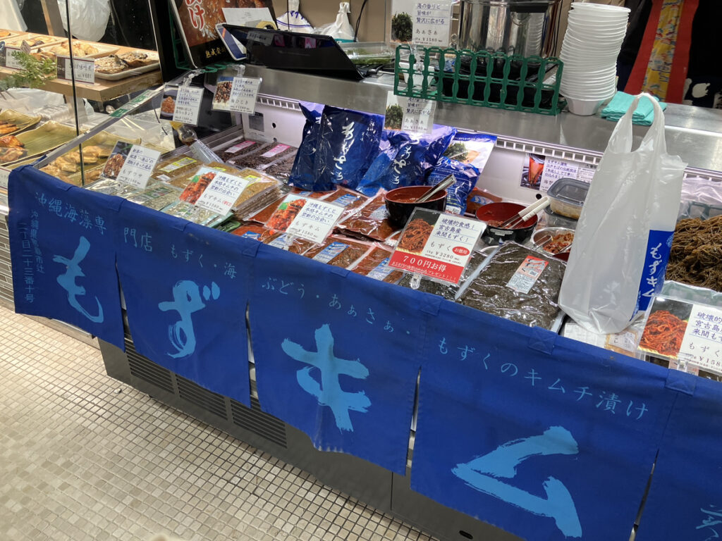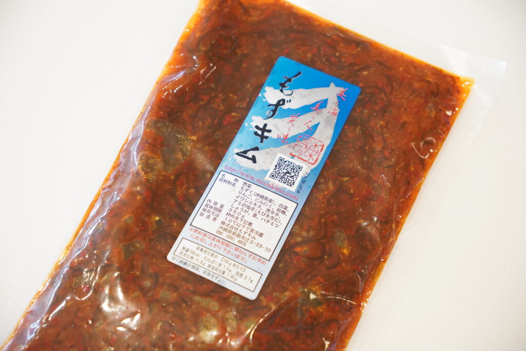 お店に到着してすぐ、「いらっしゃいませ~。どうぞどうぞ、試食してみてください!」とお兄さんが間髪入れず、銀紙のトレーにもずキムを入れて、私に渡してくださいました。食べ終わると、「こちらもおいしいですよ~。」ともずキムの辛さ増しバージョンもくださいました。「よし!買うぞ~!」と意気込んでいると、韓国風味が増しておいしいとごま油でアレンジしたバージョンや、もずくのスープもいただき、至れり尽くせりの試食タイムを過ごしました。こんなにいろいろ試食させていただいたにも関わらず、申し訳ないなと思いつつも、もずキム一袋を購入しCASEに帰社。お兄さん、すてきな時間をありがとうございました!