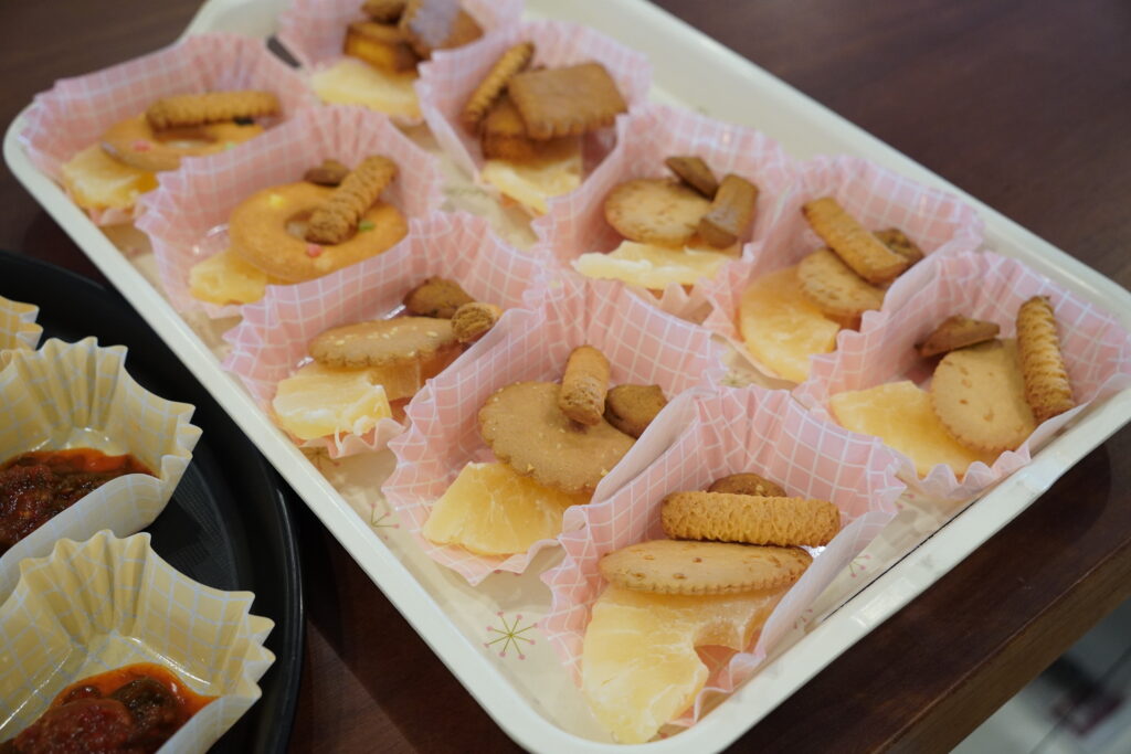 今回は、もずキム、狩野さんからいただいたドライパイン、クッキー、おみそ汁をご用意。
